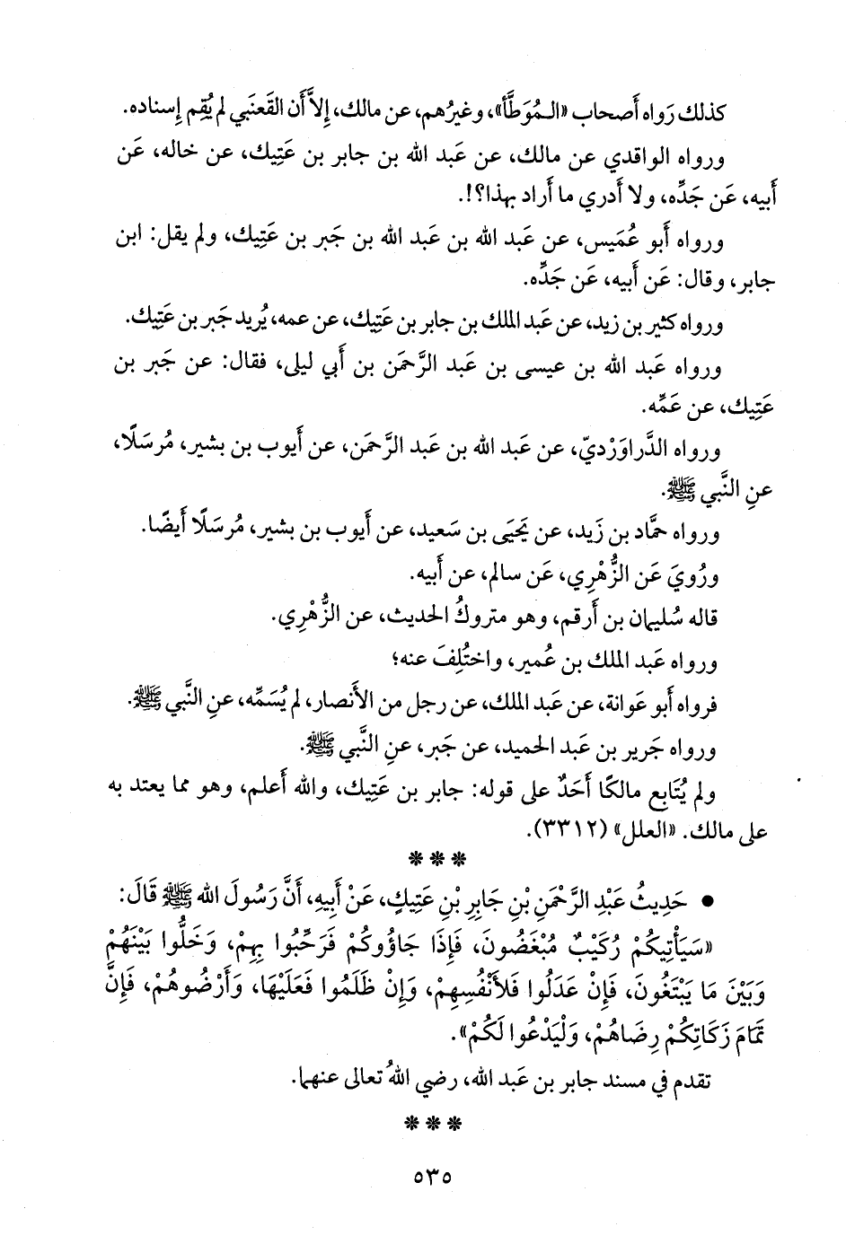 • حديث عبد الرحمن بن جابر بن عتيك، عن أبيه، أن رسول الله صَلى الله عَليه وسَلم قال: