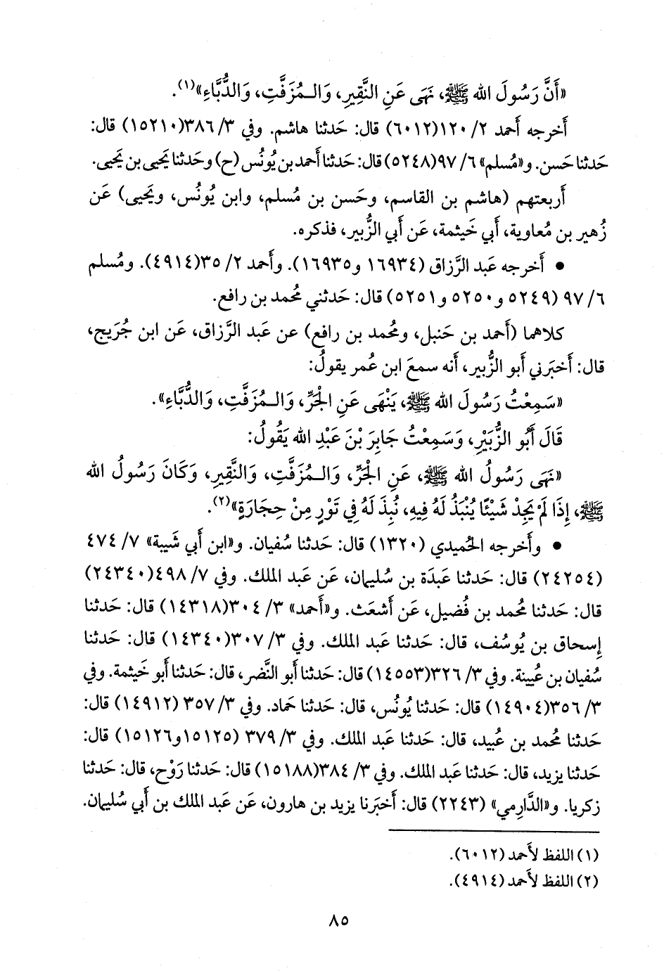 و «مسلم» ٦/ ٩٨ (٥٢٥٢) قال: حدثنا يحيى بن يحيى، قال: أخبرنا أَبو عَوانة. وفي (٥٢٥٣) قال: وحدثنا أحمد بن يونس، قال: حدثنا زهير (ح) وحدثنا يحيى بن يحيى، قال: أخبرنا أَبو خيثمة. و «ابن ماجة» (٣٤٠٠) قال: حدثنا محمد بن عبد الملك بن أبي الشوارب، قال: حدثنا أَبو عَوانة. و «أَبو داود» (٣٧٠٢) قال: حدثنا عبد الله بن محمد النفيلي، قال: حدثنا زهير. و «النَّسَائي» ٨/ ٣٠٢، وفي «الكبرى» (٥١٠٣) قال: أخبرنا قتيبة، قال: حدثنا أَبو عَوانة. وفي ٨/ ٣٠٩، وفي «الكبرى» (٥١٣٧) قال: أخبرنا سويد، قال: أنبأنا عبد الله، عن ابن جُريج. وفي ٨/ ٣١٠، وفي «الكبرى» (٥١٣٨) قال: أخبرني أحمد بن خالد، قال: حدثنا إسحاق، يعني الأزرق، قال: حدثنا عبد الملك بن أبي سليمان.