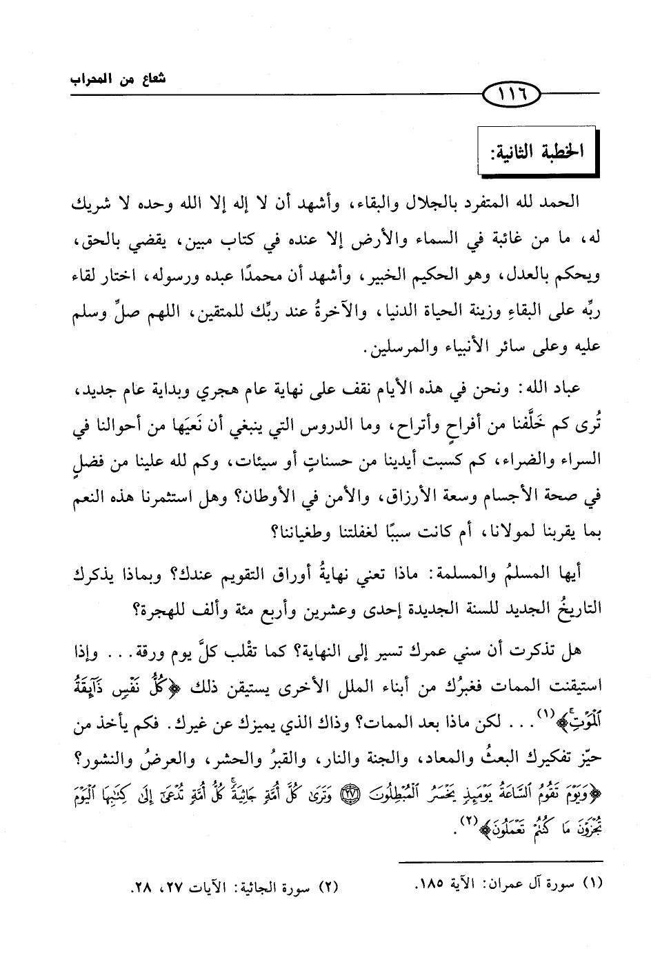 أيها المسلمُ والمسلمة: ماذا تعني نهايةُ أوراق التقويم عندك؟ وبماذا يذكرك التاريخُ الجديد للسنة الجديدة إحدى وعشرين وأربع مئة وألف للهجرة؟