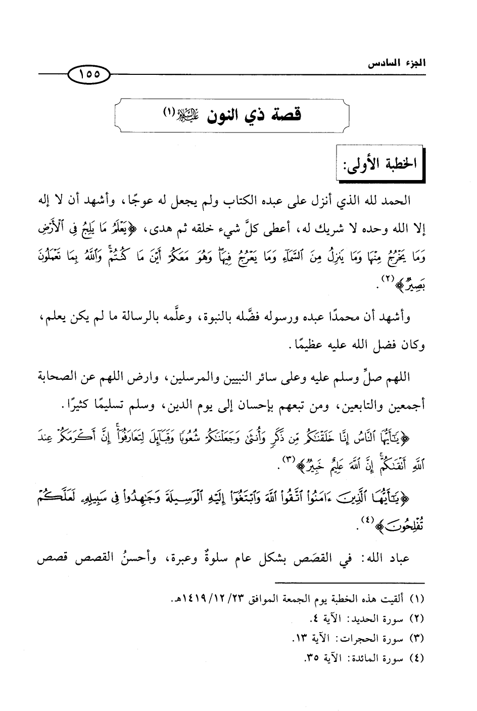 عباد الله: في القصَص بشكل عام سلوةٌ وعبرة، وأحسنُ القصص قصص