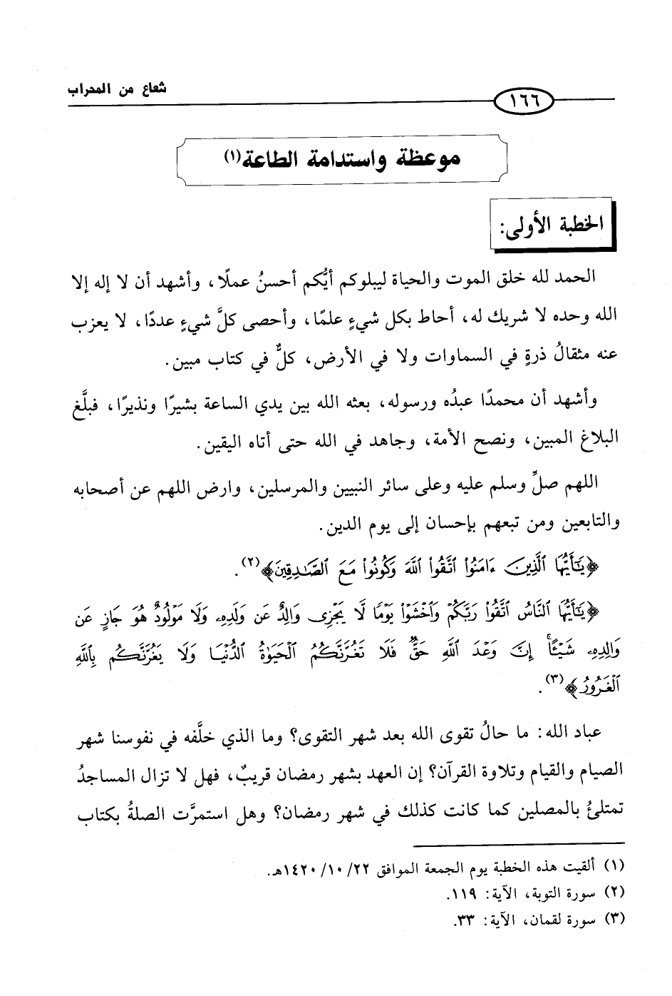 (¬1) ألقيت هذه الخطبة يوم الجمعة الموافق 22/ 10/ 1420 هـ.