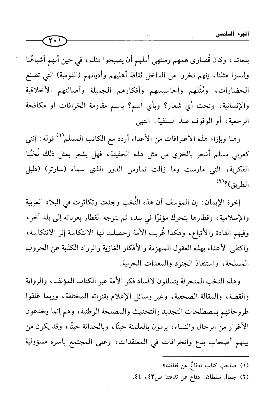(¬2) جمال سلطان: دفاع عن ثقافتنا ص 43، 44.