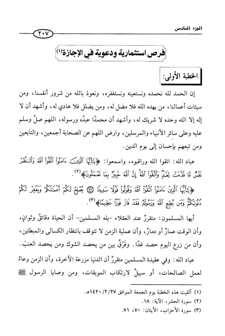 (¬1) ألقيت هذه الخطبة يوم الجمعة الموافق 27/ 2/ 1420 هـ.