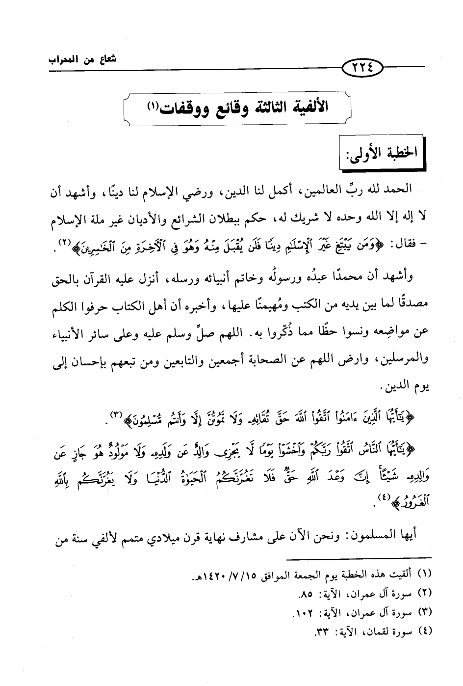 أيها المسلمون: ونحن الآن على مشارف نهاية قرن ميلادي متمم لألفي سنة من