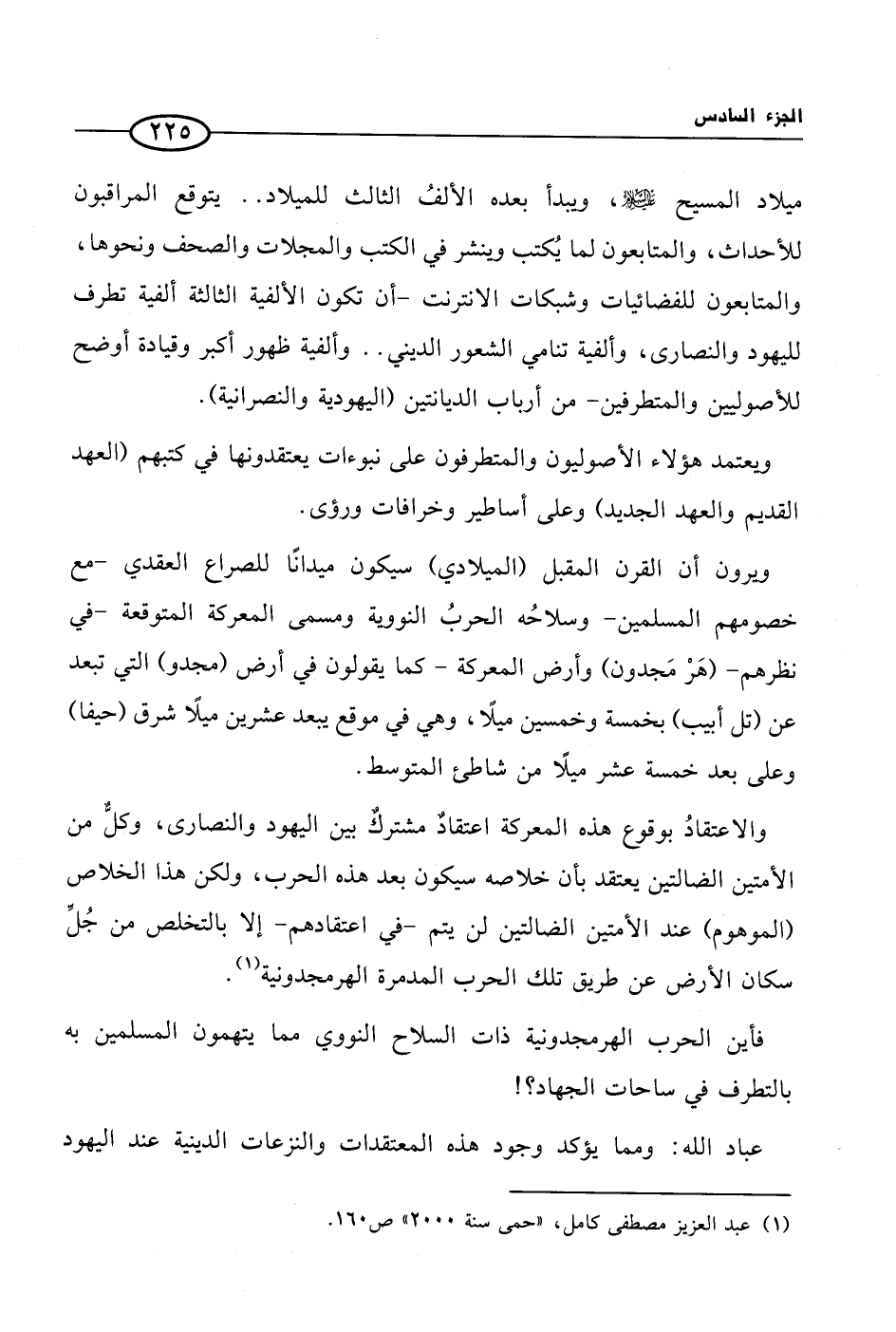 ويرون أن القرن المقبل (الميلادي) سيكون ميدانًا للصراع العقدي - مع خصومهم المسلمين - وسلاحُه الحربُ النووية ومسمى المعركة المتوقعة - في نظرهم - (هَرْ مَجدون) وأرض المعركة - كما يقولون في أرض (مجدو) التي تبعد عن (تل أبيب) بخمسة وخمسين ميلًا، وهي في موقع يبعد عشرين ميلًا شرق (حيفا) وعلى بعد خمسة عشر ميلًا من شاطئ المتوسط.