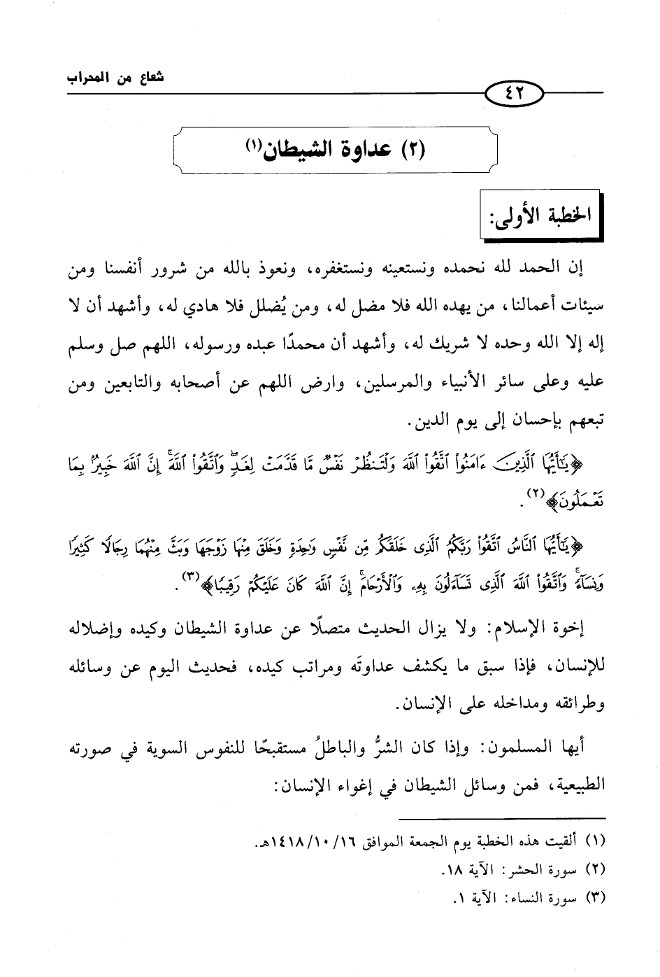 (¬1) ألقيت هذه الخطبة يوم الجمعة الموافق 16/ 10/ 1418 هـ.