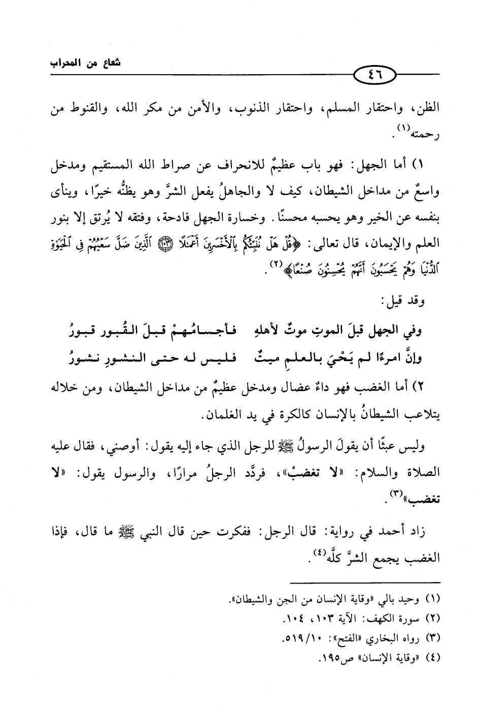 2) أما الغضب فهو داءٌ عضال ومدخل عظيمٌ من مداخل الشيطان، ومن خلاله يتلاعب الشيطانُ بالإنسان كالكرة في يد الغلمان.