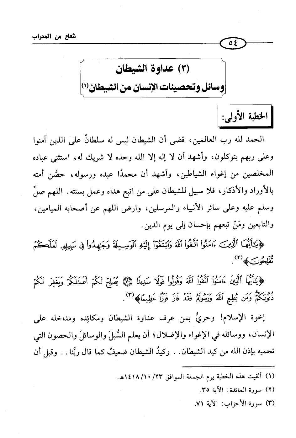 (¬1) ألقيت هذه الخطبة يوم الجمعة الموافق 23/ 10/ 1418 هـ.