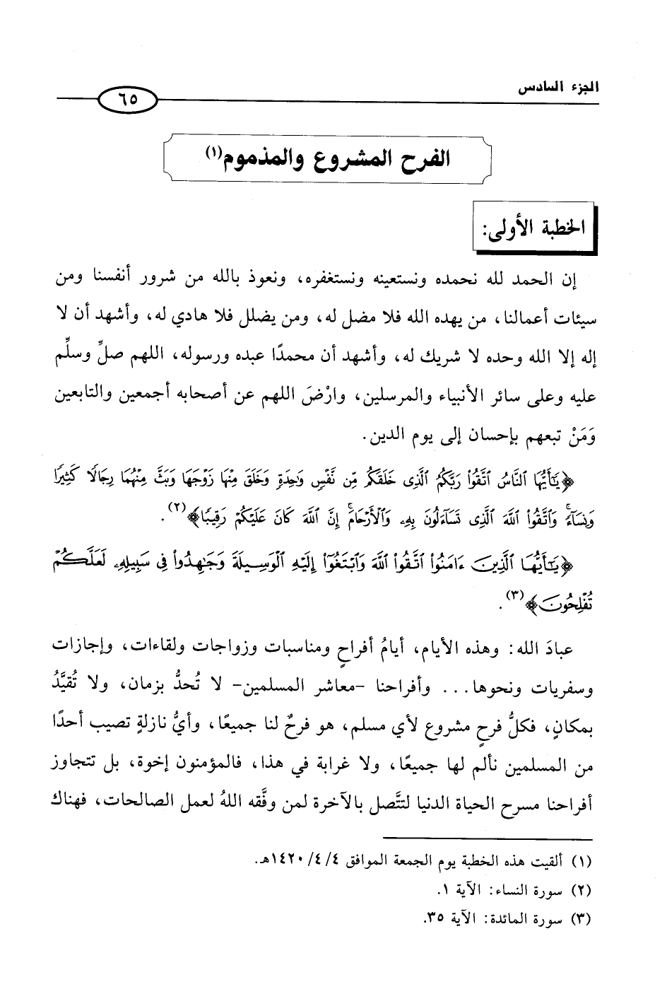 (¬1) ألقيت هذه الخطبة يوم الجمعة الموافق 4/ 4/ 1420.
