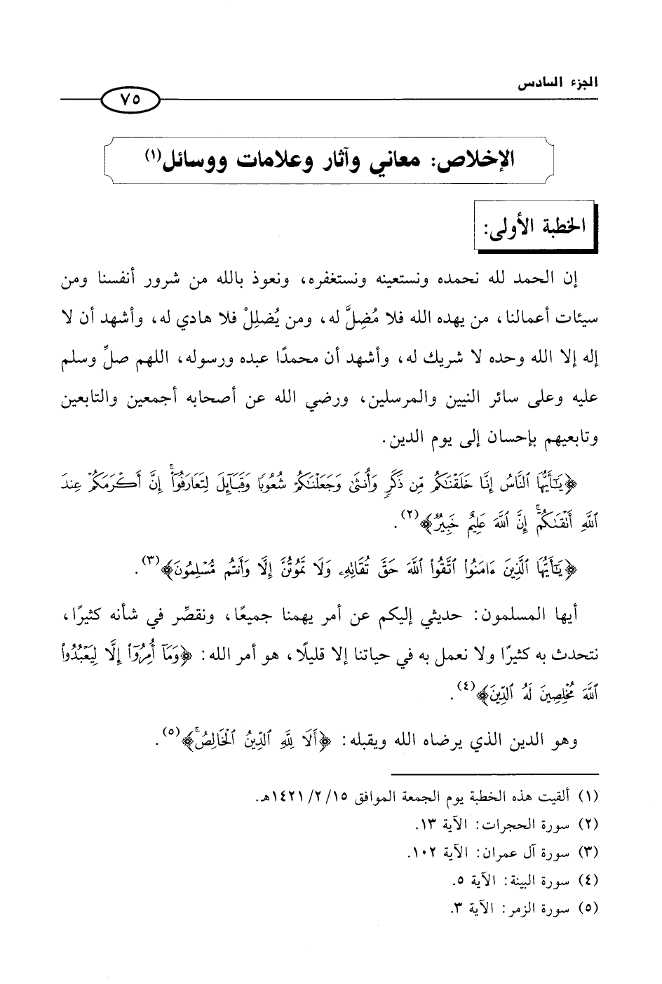 الإخلاص: معاني وآثار وعلامات ووسائل (¬1)
