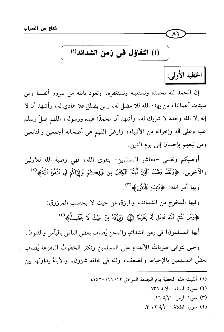 (1) التفاؤل في زمن الشدائد (¬1)