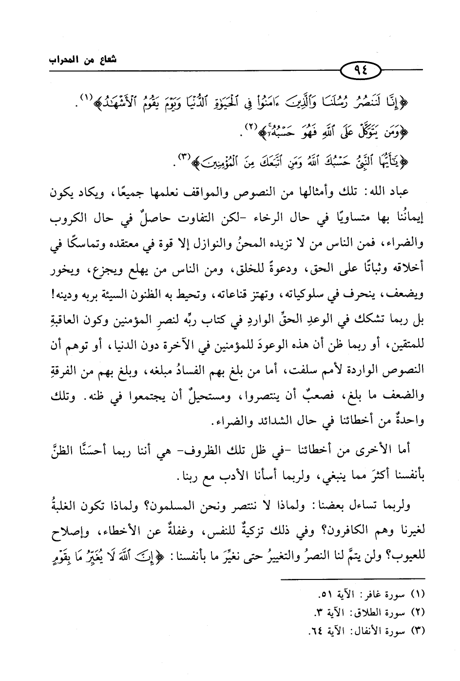 {يَا أَيُّهَا النَّبِيُّ حَسْبُكَ اللَّهُ وَمَنِ اتَّبَعَكَ مِنَ الْمُؤْمِنِينَ} (¬3).