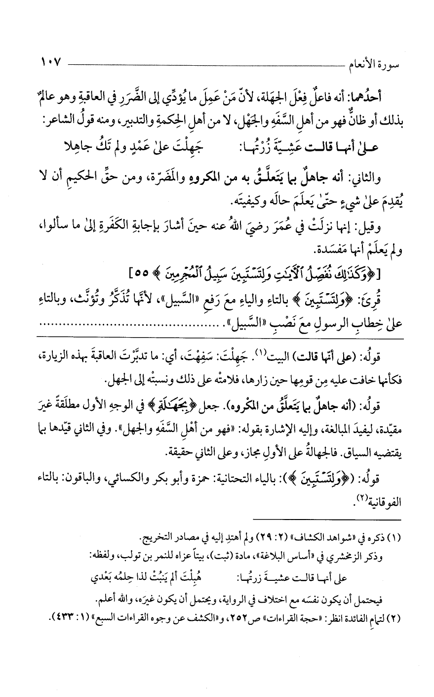 قرئ: (وَلِتَسْتَبِينَ) بالتاء والياء مع رفع "السبيل"، لأنها تذكر وتؤنث، وبالتاء على خطاب الرسول مع نصب "السبيل"
