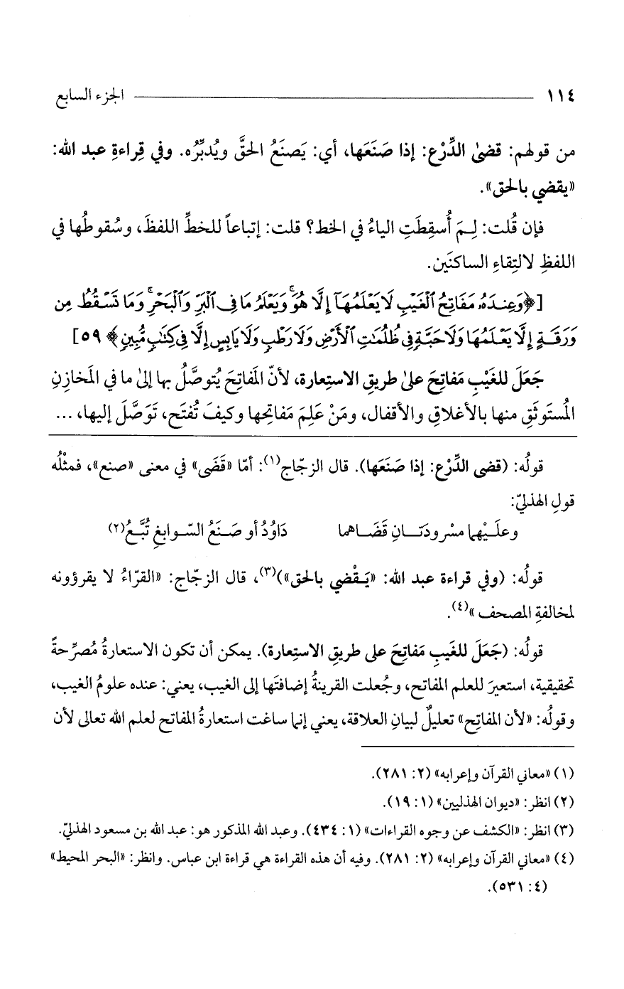 قوله: (وفي قراءة عبد الله: "يقضي بالحق")، قال الزجاج: "القراء لا يقرؤونه لمخالفة المصحف".