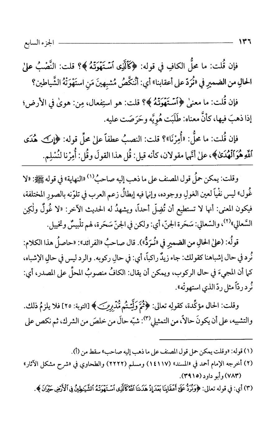 فإن قلت: ما محل الكاف في قوله: (كَالَّذِي اسْتَهْوَتْهُ)؟ قلت: النصب على الحال من الضمير في "نُرَدُّ عَلى أَعْقابِنا" أي: أننكص مشبهين من استهوته الشياطين؟