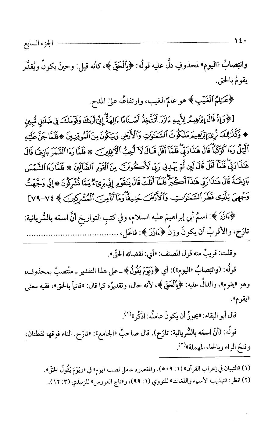 قوله: (أن اسمه بالسريانية: تارح). قال صاحب "الجامع": "تارح. التاء فوقها نقطتان، وفتح الراء وبالحاء المهملة".