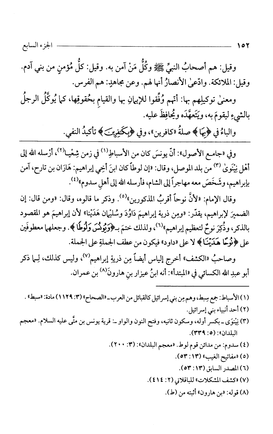 وفي "جامع الأصول": أن يونس كان من الأسباط في زمن شعيا، أرسله الله إلى أهل نينوى من بلد الموصل، وقال: "إن لوطاً كان ابن أخي إبراهيم: هاران بن تارح، آمن بإبراهيم، وشخص معه مهاجراً إلى الشام، فأرسله الله إلى أهل سدوم".