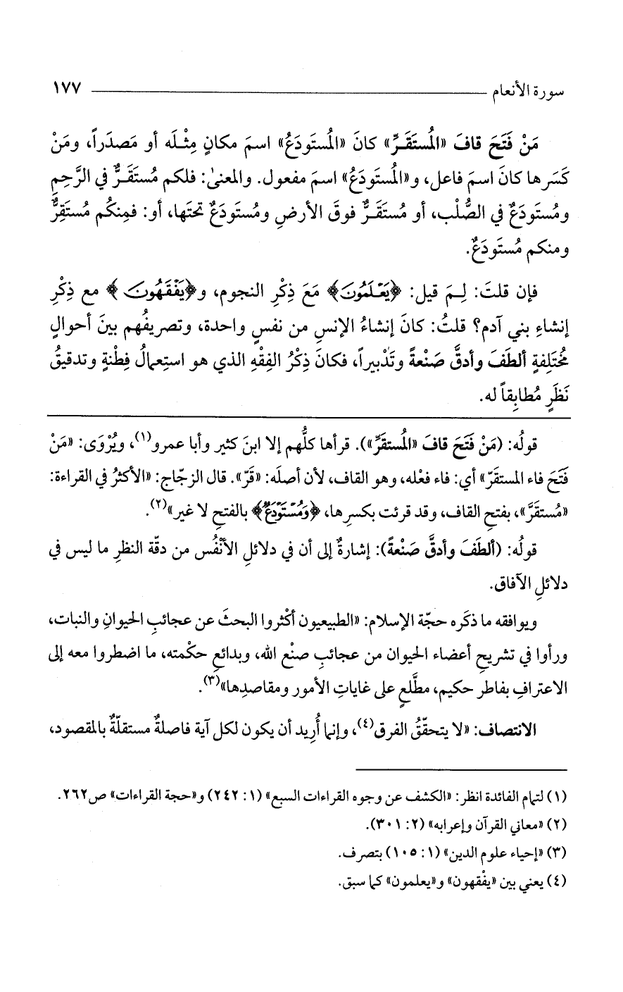 قوله: (من فتح قاف "المستقر"). قرأها كلهم إلا ابن كثير وأبا عمرو، ويروى: "من فتح فاء المستقر" أي: فاء فعله، وهو القاف، لأن أصله: "قر". قال الزجاج: "الأكثر في القراءة: "مستقر"، بفتح القاف، وقد قرئت بكسرها، (وَمُسْتَوْدَعٌ) بالفتح لا غير".
