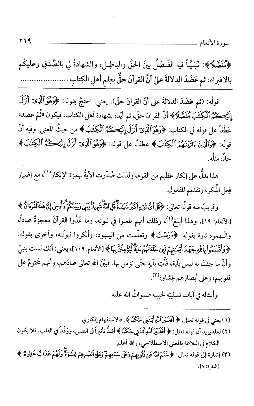 (مُفَصَّلًا): مبيناً فيه الفصل بين الحق والباطل، والشهادة لي بالصدق وعليكم بالافتراء، ثم عضد الدلالة على أنّ القرآن حقٌّ بعلم أهل الكتاب