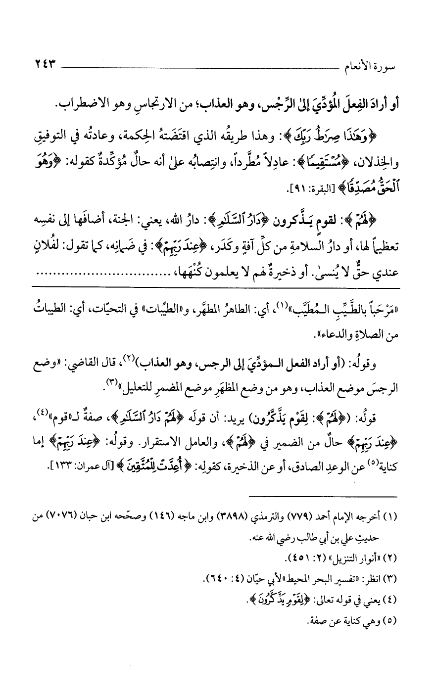 (لَهُمْ): لقومٍ يذكرون (دارُ السَّلامِ): دارُ الله، يعني: الجنة، أضافها إلى نفسه تعظيماً لها، أو دار السلامة من كل آفة وكدر، (عِنْدَ رَبِّهِمْ): في ضمانه، كما تقول: لفلانٍ عندي حق لا ينسى. أو ذخيرةٌ لهم لا يعلمون كنهها، ......