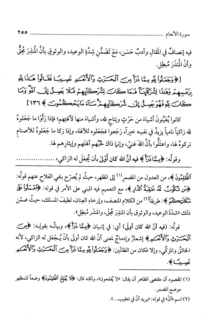[(وَجَعَلُوا لِلَّهِ مِمَّا ذَرَأَ مِنَ الْحَرْثِ وَالْأَنْعامِ نَصِيباً فَقالُوا هذا لِلَّهِ بِزَعْمِهِمْ وَهذا لِشُرَكائِنا فَما كانَ لِشُرَكائِهِمْ فَلا يَصِلُ إِلَى اللَّهِ وَما كانَ لِلَّهِ فَهُوَ يَصِلُ إِلى شُرَكائِهِمْ ساءَ ما يَحْكُمُونَ)].