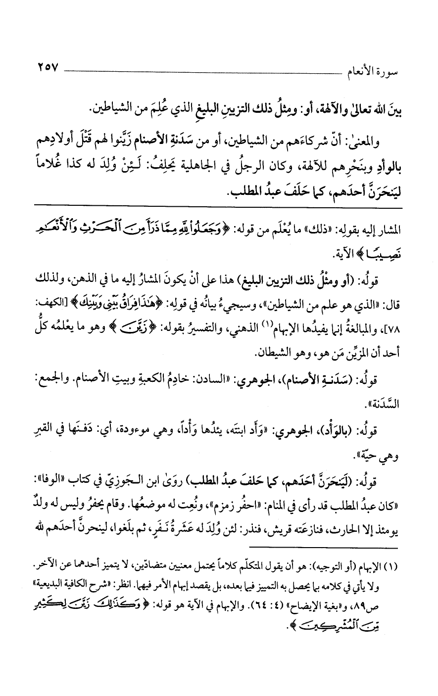 قوله: (أو ومثل ذلك التزيين البليغ) هذا على أن يكون المشار إليه ما في الذهن، ولذلك قال: "الذي هو علم من الشياطين"، وسيجيء بيانه في قوله: (هَذَا فِرَاقُ بَيْنِي وبَيْنِكَ) [الكهف: 78]، والمبالغة إنما يفيدها الإبهام الذهني، والتفسير بقوله: (زين) وهو ما يعلمه كل أحد أن المزين من هو، وهو الشيطان.
