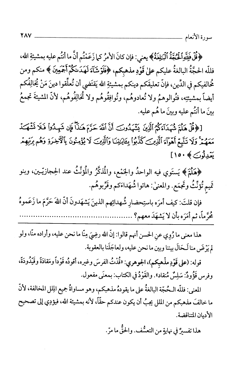 [(قُلْ هَلُمَّ شُهَداءَكُمُ الَّذِينَ يَشْهَدُونَ أَنَّ اللَّهَ حَرَّمَ هذا فَإِنْ شَهِدُوا فَلا تَشْهَدْ مَعَهُمْ وَلا تَتَّبِعْ أَهْواءَ الَّذِينَ كَذَّبُوا بِآياتِنا وَالَّذِينَ لا يُؤْمِنُونَ بِالْآخِرَةِ وَهُمْ بِرَبِّهِمْ يَعْدِلُونَ)].