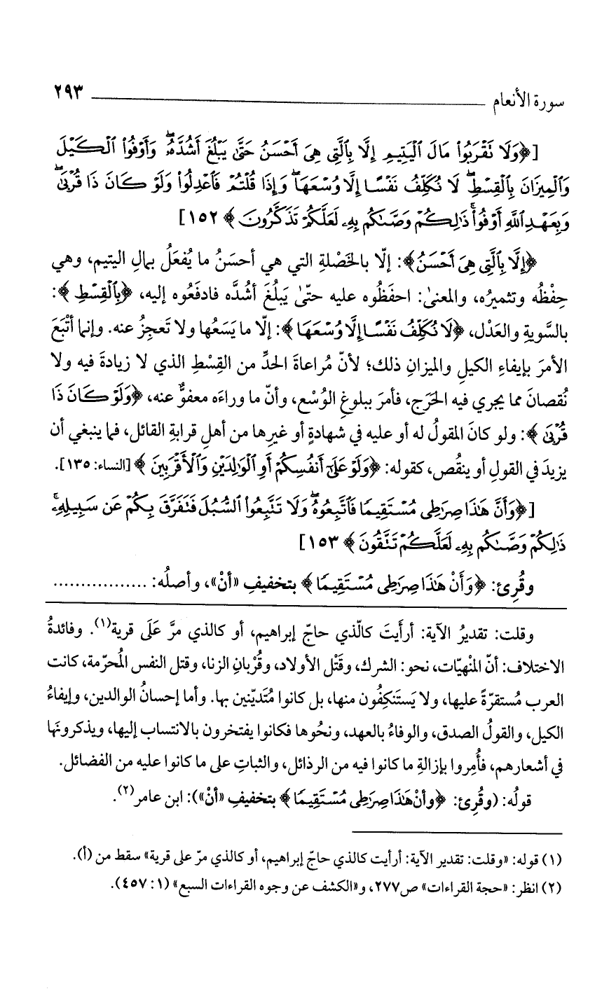 [(وَلا تَقْرَبُوا مالَ الْيَتِيمِ إِلاَّ بِالَّتِي هِيَ أَحْسَنُ حَتَّى يَبْلُغَ أَشُدَّهُ وَأَوْفُوا الْكَيْلَ وَالْمِيزانَ بِالْقِسْطِ لا نُكَلِّفُ نَفْساً إِلاَّ وُسْعَها وَإِذا قُلْتُمْ فَاعْدِلُوا وَلَوْ كانَ ذا قُرْبى وَبِعَهْدِ اللَّهِ أَوْفُوا ذلِكُمْ وَصَّاكُمْ بِهِ لَعَلَّكُمْ تَذَكَّرُونَ)].
