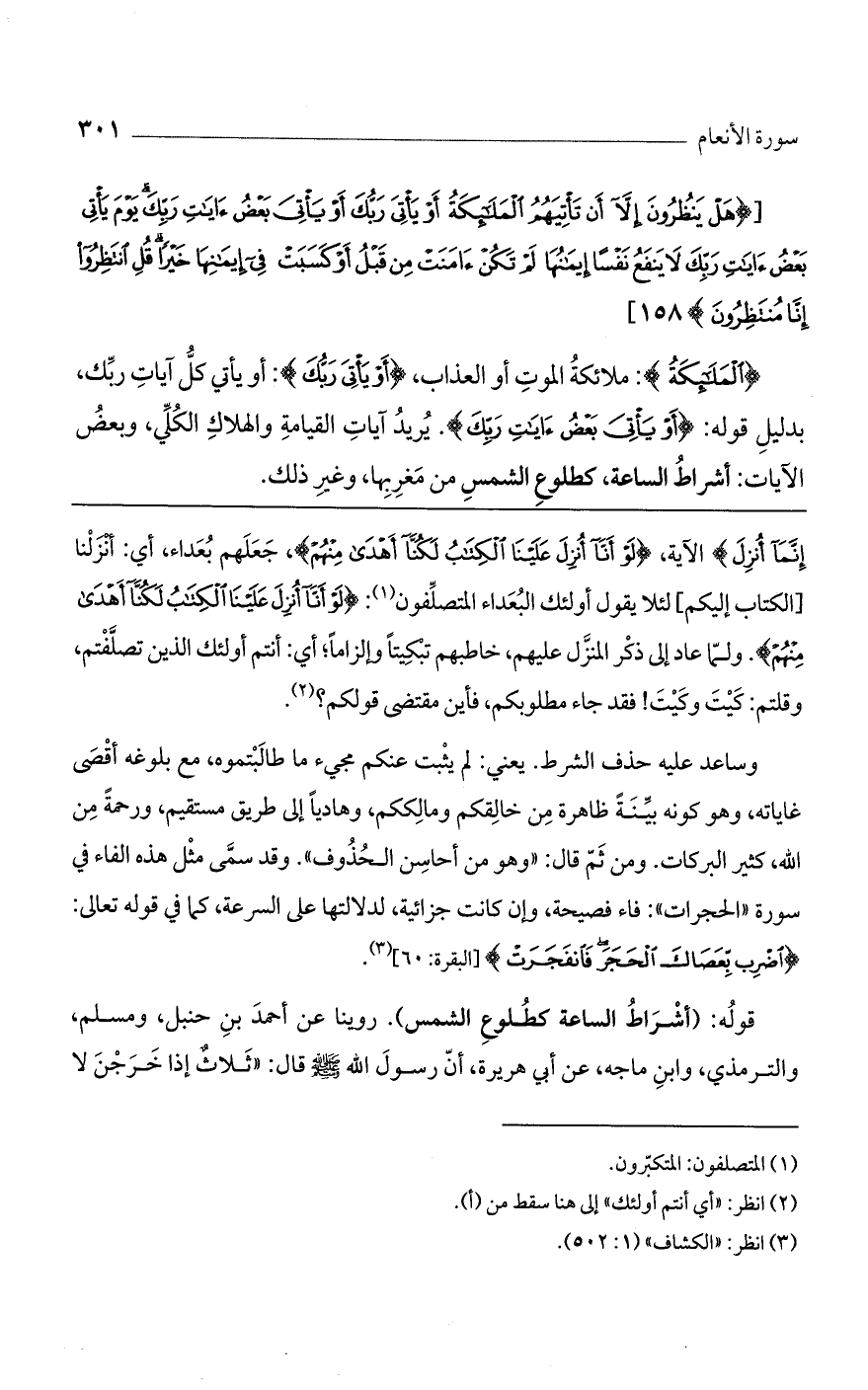 قوله: (أشرط الساعة كطلوع الشمس). روينا عن أحمد بن حنبل، ومسلم، والترمذي، وابن ماجه، عن أبي هريرة، أن رسول الله صلي الله عليه وسلم قال: "ثلاث إذا خرجن لا