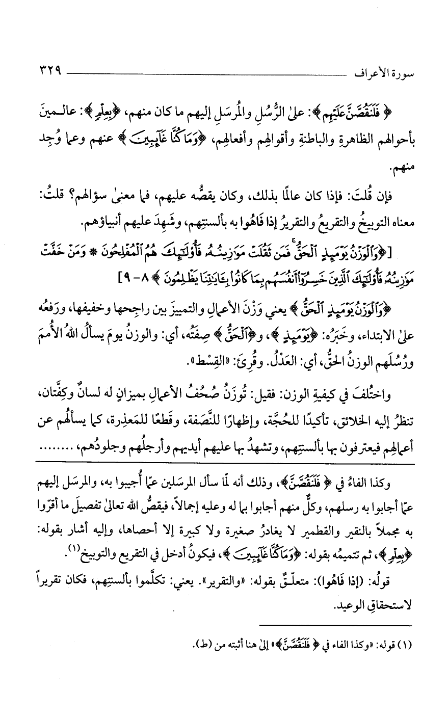 (فَلَنَقُصَّنَّ عَلَيْهِمْ): على الرسل والمرسل إليهم ما كان منهم (بِعِلْمٍ): عالمين بأحوالهم الظاهرة والباطنة وأقوالهم وأفعالهم (وَما كُنَّا غائِبِينَ) عنهم وعما وجد منهم.