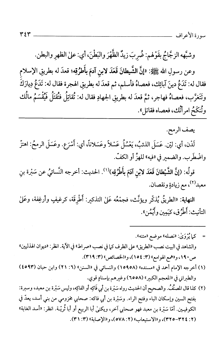 قوله: (إن الشيطان قعد لابن آدم باطرقه). الحديث: أخرجه النسائي عن سبرة بن معبد، مع زيادة ونقصان.