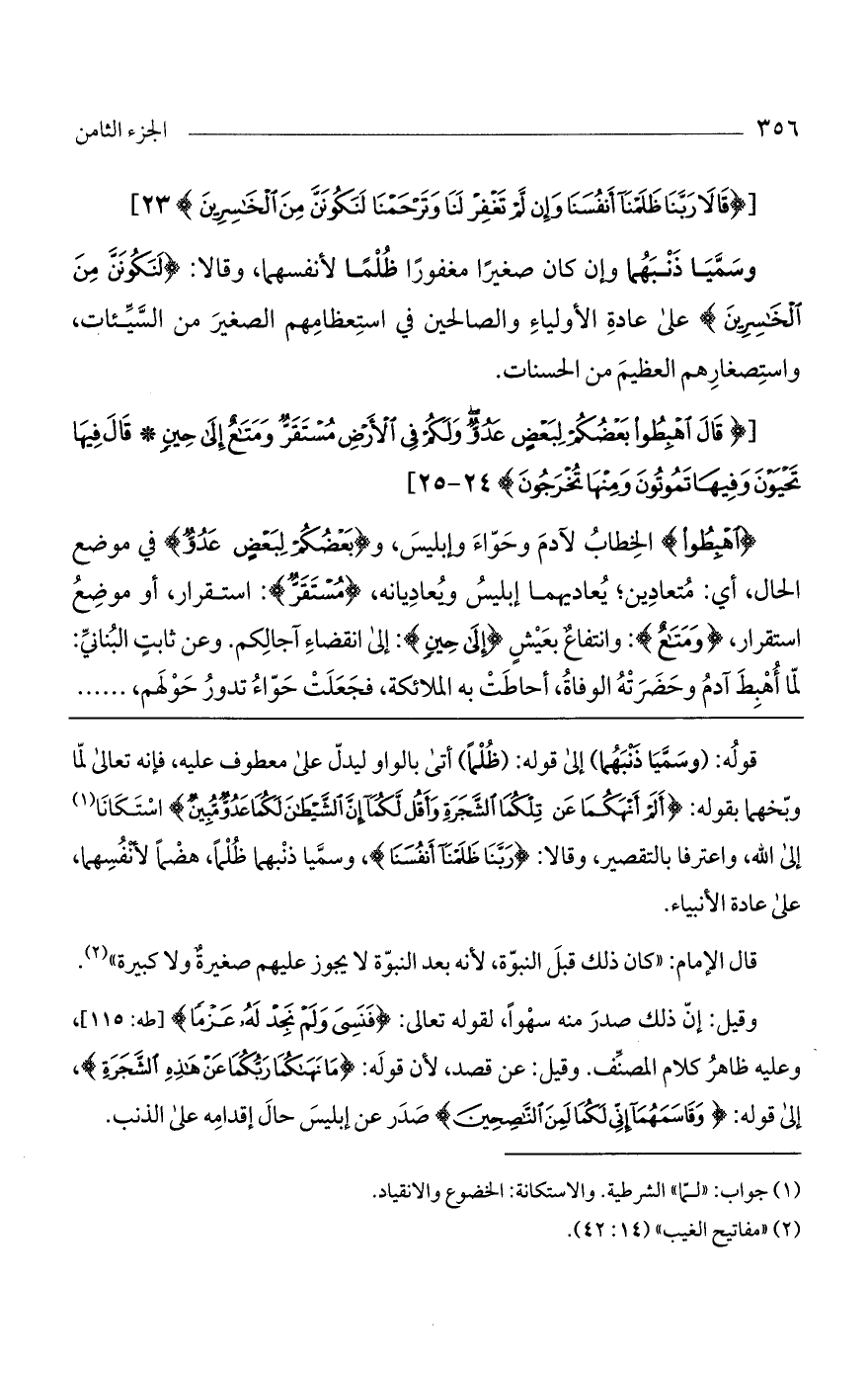 وسميا ذنبهما وإن كان صغيراً مغفوراً ظلماً لأنفسهما، وقالا: (لَنَكُونَنَّ مِنَ الْخاسِرِينَ) على عادة الأولياء والصالحين في استعظامهم الصغير من السيئات، واستصغارهم العظيم من الحسنات.