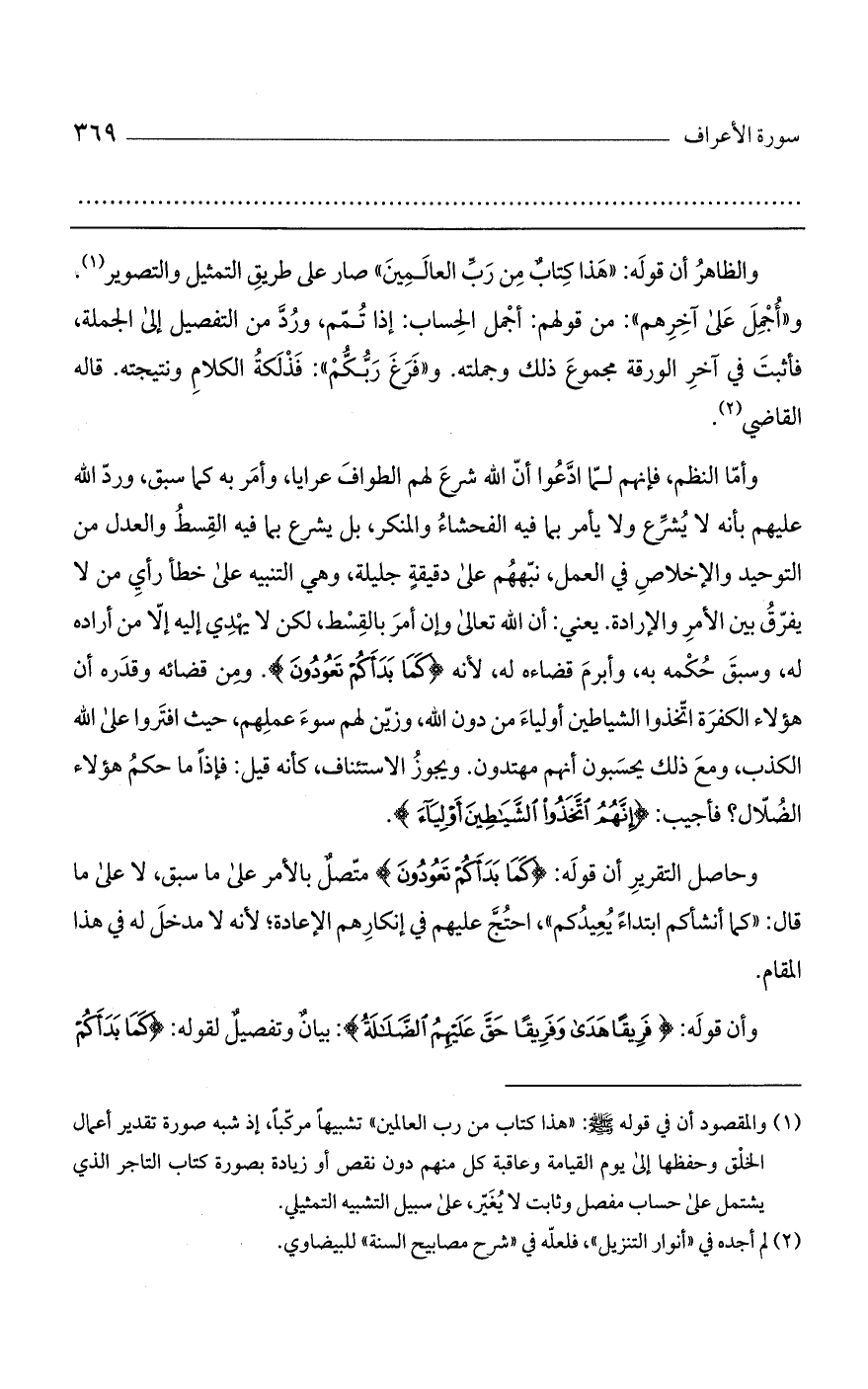 وحاصل التقرير أن قوله: (كما بدأكم تعودون) متصل بالأمر على ما سبق، لا على ما قال: "كما أنشأكم ابتداءً يعيدكم"، احتج عليهم في إنكارهم الإعادة؛ لأنه لا مدخل له في هذا المقام.