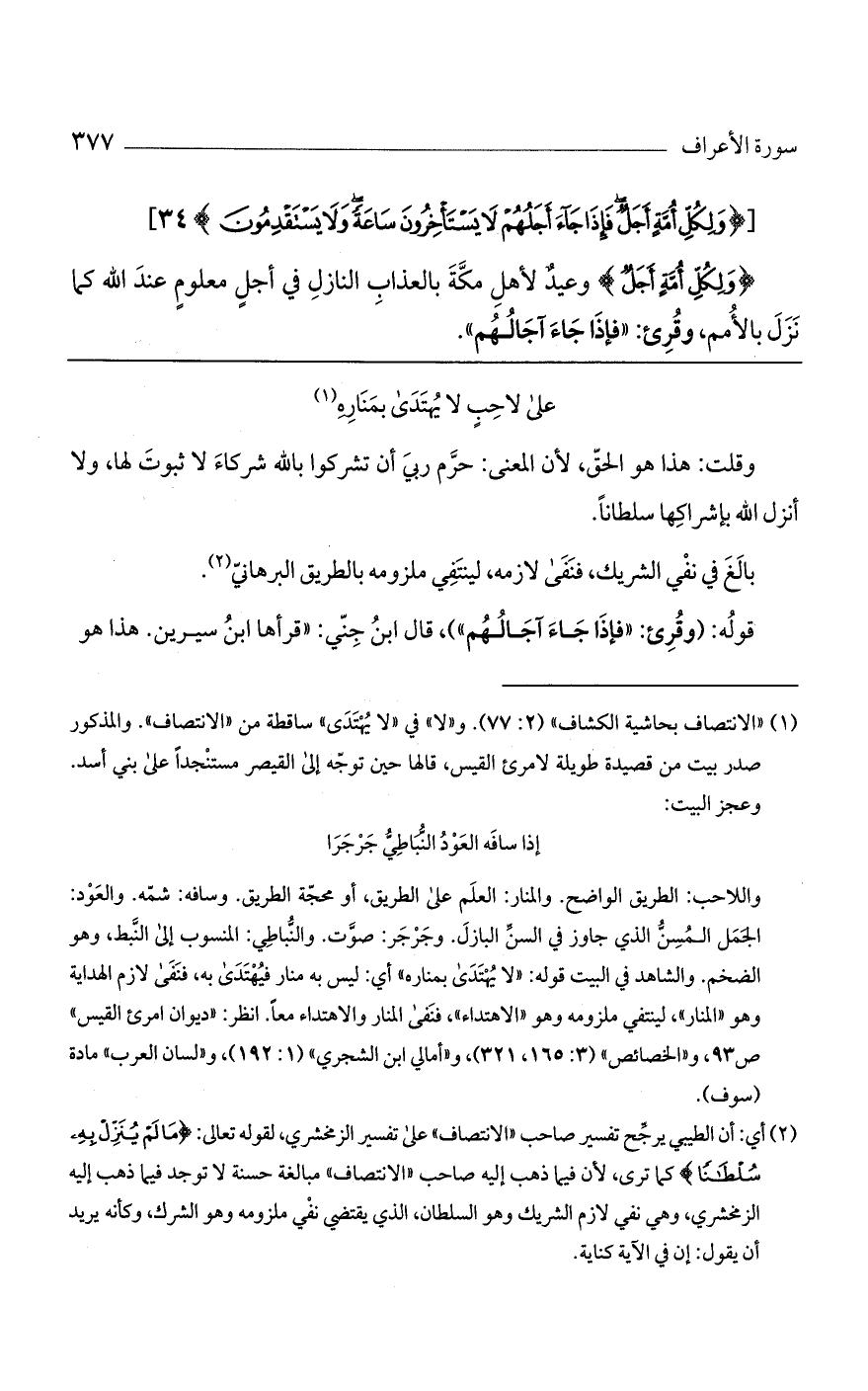 قوله: (وقرئ: "فإذا جاء آجالهم")، قال ابن جني: "قرأها ابن سيرين. هذا هو