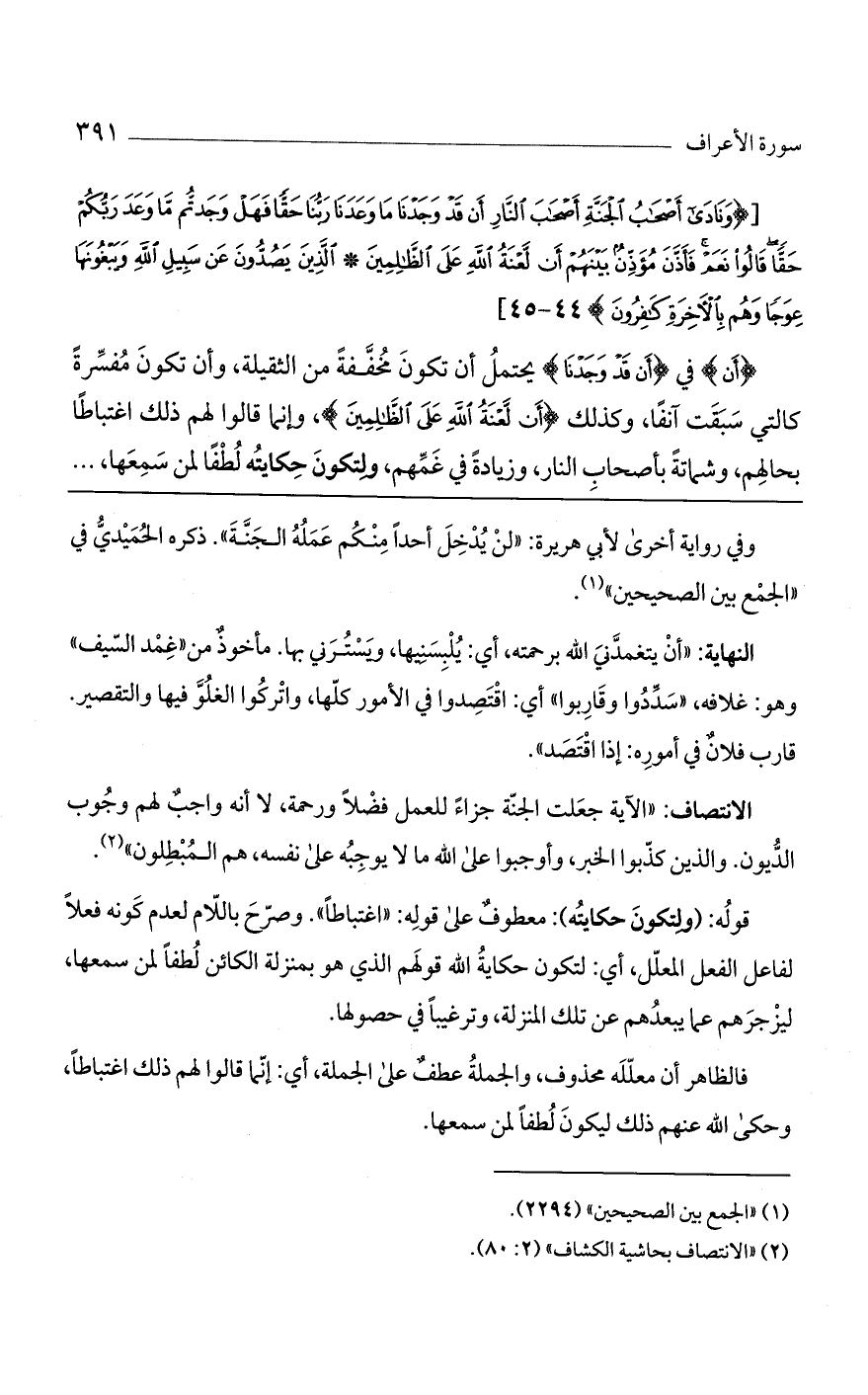 [(وَنادى أَصْحابُ الْجَنَّةِ أَصْحابَ النَّارِ أَنْ قَدْ وَجَدْنا ما وَعَدَنا رَبُّنا حَقًّا فَهَلْ وَجَدْتُمْ ما وَعَدَ رَبُّكُمْ حَقًّا قالُوا نَعَمْ فَأَذَّنَ مُؤَذِّنٌ بَيْنَهُمْ أَنْ لَعْنَةُ اللَّهِ عَلَى الظَّالِمِينَ* الَّذِينَ يَصُدُّونَ عَنْ سَبِيلِ اللَّهِ وَيَبْغُونَها عِوَجاً وَهُمْ بِالْآخِرَةِ كافِرُونَ)].