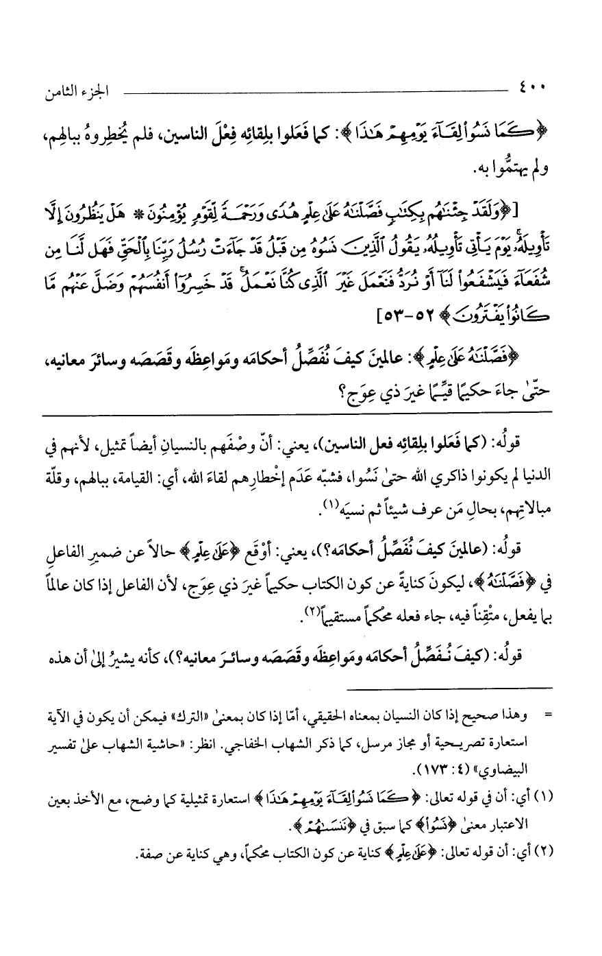 [(وَلَقَدْ جِئْناهُمْ بِكِتابٍ فَصَّلْناهُ عَلى عِلْمٍ هُدىً وَرَحْمَةً لِقَوْمٍ يُؤْمِنُونَ* هَلْ يَنْظُرُونَ إِلاَّ تَاوِيلَهُ يَوْمَ يَاتِي تَاوِيلُهُ يَقُولُ الَّذِينَ نَسُوهُ مِنْ قَبْلُ قَدْ جاءَتْ رُسُلُ رَبِّنا بِالْحَقِّ فَهَلْ لَنا مِنْ شُفَعاءَ فَيَشْفَعُوا لَنا أَوْ نُرَدُّ فَنَعْمَلَ غَيْرَ الَّذِي كُنَّا نَعْمَلُ قَدْ خَسِرُوا أَنْفُسَهُمْ وَضَلَّ عَنْهُمْ ما كانُوا يَفْتَرُونَ)].