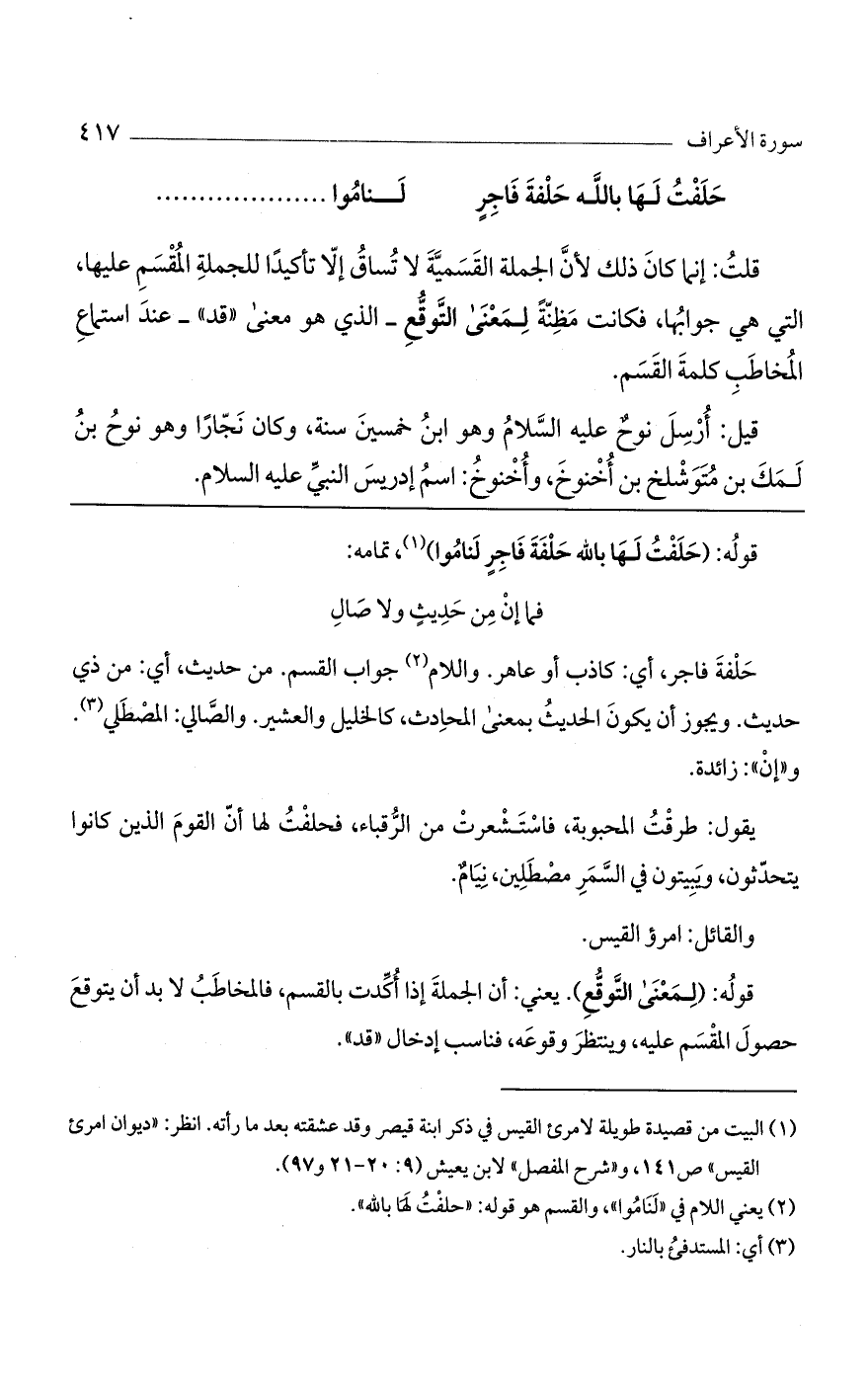 قوله: (حلفت لها بالله حلفة فاجرٍ لناموا)، تمامه: