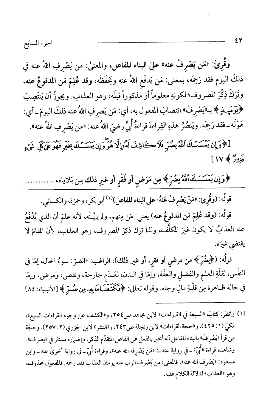 قوله: (وقرئ: "من يصرف عنه" على البناء للفاعل) أبو بكر، وحمزة، والكسائي.