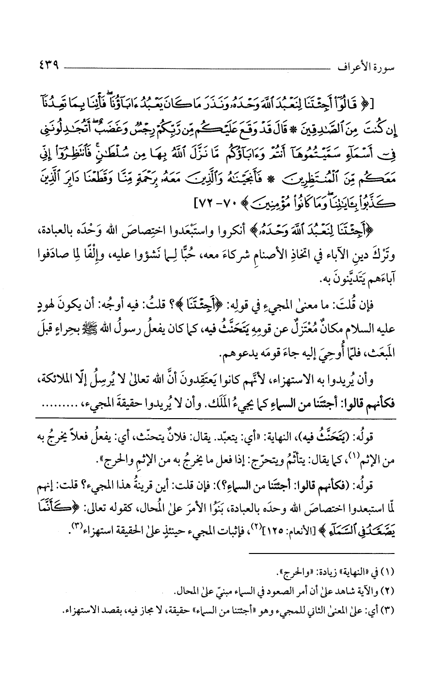 [(قالُوا أَجِئْتَنا لِنَعْبُدَ اللَّهَ وَحْدَهُ وَنَذَرَ ما كانَ يَعْبُدُ آباؤُنا فَاتِنا بِما تَعِدُنا إِنْ كُنْتَ مِنَ الصَّادِقِينَ* قالَ قَدْ وَقَعَ عَلَيْكُمْ مِنْ رَبِّكُمْ رِجْسٌ وَغَضَبٌ أَتُجادِلُونَنِي فِي أَسْماءٍ سَمَّيْتُمُوها أَنْتُمْ وَآباؤُكُمْ ما نَزَّلَ اللَّهُ بِها مِنْ سُلْطانٍ فَانْتَظِرُوا إِنِّي مَعَكُمْ مِنَ الْمُنْتَظِرِينَ* فَأَنْجَيْناهُ وَالَّذِينَ مَعَهُ بِرَحْمَةٍ مِنَّا وَقَطَعْنا دابِرَ الَّذِينَ كَذَّبُوا بِآياتِنا وَما كانُوا مُؤْمِنِينَ)].