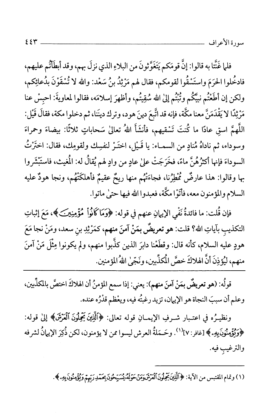ونظيره في اعتبار شرف الإيمان قوله تعالى: (الَّذِينَ يَحْمِلُونَ العَرْشَ) إلى قوله: (ويُؤْمِنُونَ بِهِ) [غافر: 7]. وحملة العرش ليسوا ممن لا يؤمنون، لكن ذكر الإيمان لشرفه والترغيب فيه.