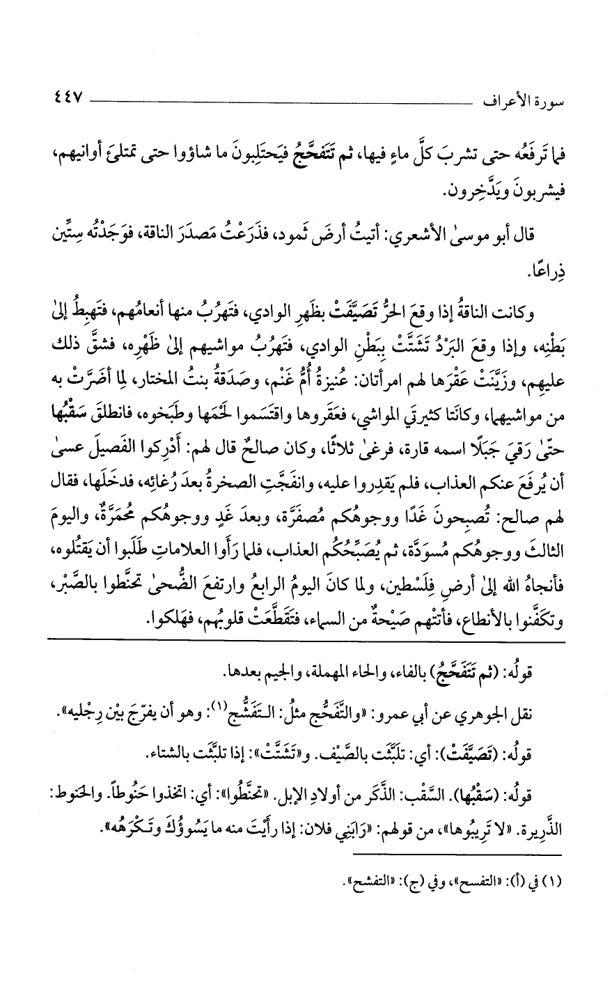 قوله: (ثم تتفحج) بالفاء، والحاء المهملة، والجيم بعدها.