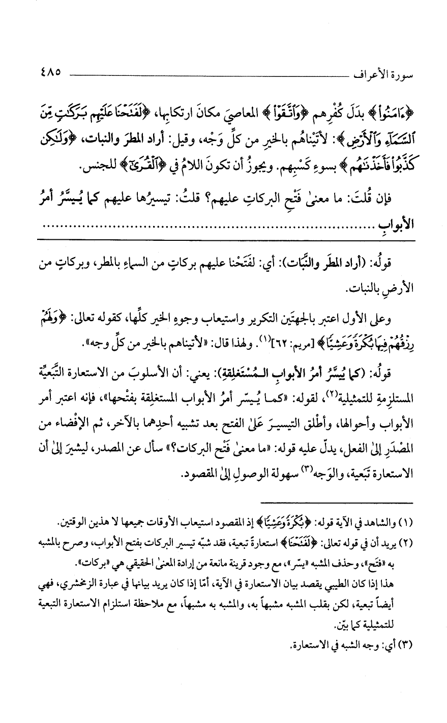 فإن قلت: ما معنى فتح البركات عليهم؟ قلت: تيسيرها عليهم كما ييسر أمر الأبواب
