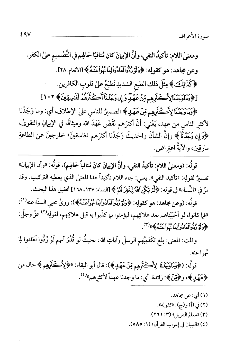 قوله: ((وما وجدنا لأكثرهم من عهدٍ)): قال أبو البقاء: " (لأكثرهم) حال من (عهدٍ)، و (من): زائدة. أي: ما وجدنا عهداً لأكثرهم".