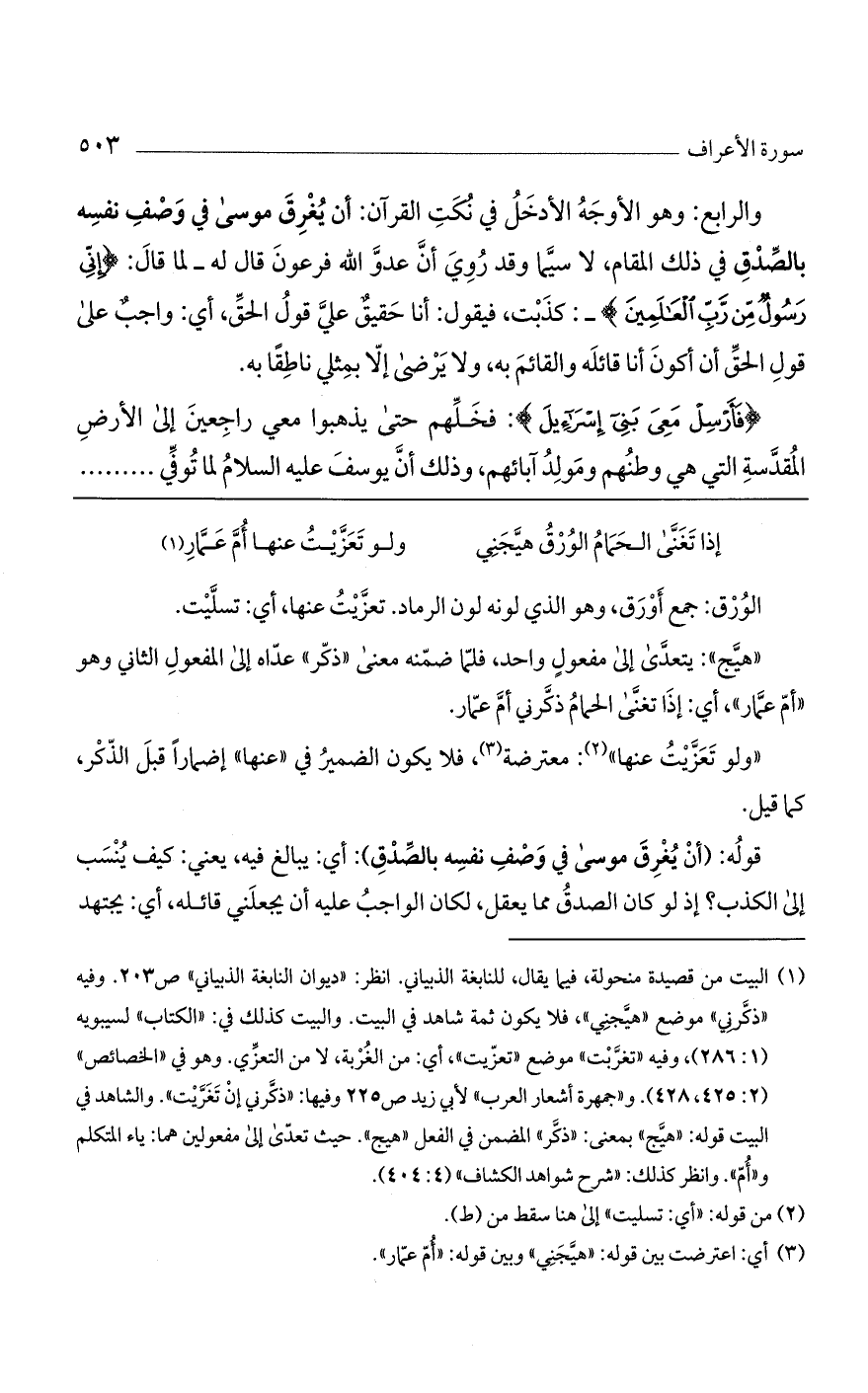 والرابع: وهو الأوجه الأدخل في نكت القرآن: أن يُغرِق موسى في وصف نفسه بالصدق في ذلك المقام، لا سيما وقد روي أنّ عدو الله فرعون قال له- لما قال: (إِنِّي رَسُولٌ مِنْ رَبِّ الْعالَمِينَ) -: كذبت، فيقول: أنا حقيقٌ علي قول الحق، أي: واجبٌ على قول الحق أن أكون أنا قائله والقائم به، ولا يرضى إلا بمثلي ناطقاً به.