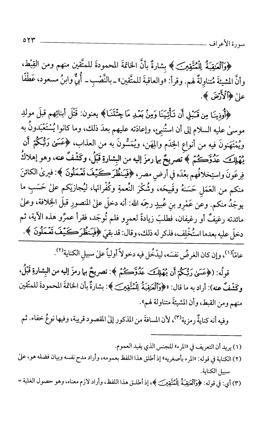قوله: ((عَسَى رَبُّكُمْ أَن يُهْلِكَ عَدُوَّكُمْ): تصريح بما رمز إليه من البشارة قبل، وكشف عنه): أراد به ما قال: " (والعاقبة للمتقين): بشارة بأن الخاتمة المحمودة للمتقين منهم ومن القبط، وأن المشيئة متناولة لهم".