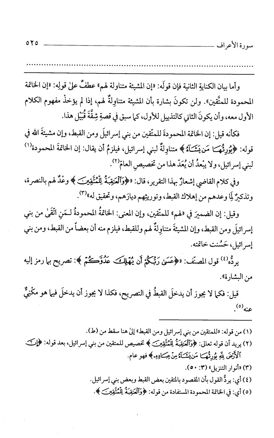 وقيل: إن الضمير في "لهم" للمتقين، وإن المعنى: الخاتمة المحمودة لمن اتقى من بني إسرائيل ومن القبط، وإن المشيئة متناولة لهم وللقبط، فيلزم منه أن بعضاً من القبط، ومن بني إسرائيل، حسنت خاتمته.