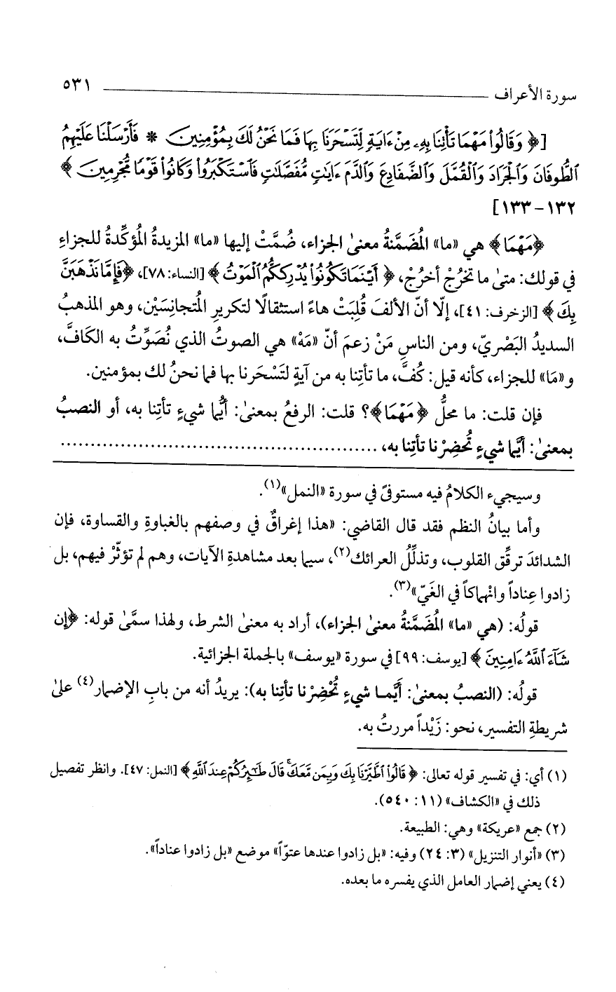 فإن قلت: ما محل (مهما)؟ قلت: الرفع بمعنى: أيما شيءٍ تأتنا به، أو النصب، بمعنى: أيما شيءٍ تحضرنا تأتنا به، ........
