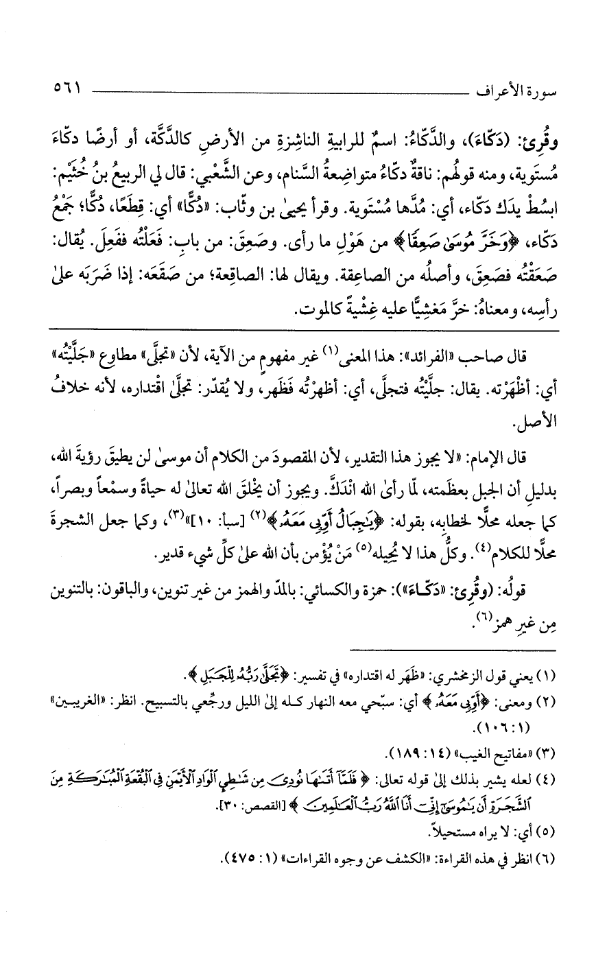 وقرئ: (دكاء)، والدكاءُ: اسم للرابية الناشزة من الأرض كالدكة، أو أرضاً دكاء مستوية، ومنه قولهم: ناقةٌ دكاء متواضعة السنام، وعن الشعبي: قال لي الربيع بن خُثيم: ابسط يدك دكاء، أي: مدّها مستوية. وقرأ يحيى بن وثاب: "دُكاً" أي: قطعاً دُكاً؛ جمع دُكاء، (وَخَرَّ مُوسى صَعِقاً) من هول ما رأى. وصعق: من باب: فعلته فَفَعِلَ. يقال: صعقته فصعق، وأصله من الصاعقة. ويقال لها الصاقعة؛ من صقعه: إذا ضربه على رأسه، ومعناه: خرّ مغشياً عليه غشيةً كالموت.
