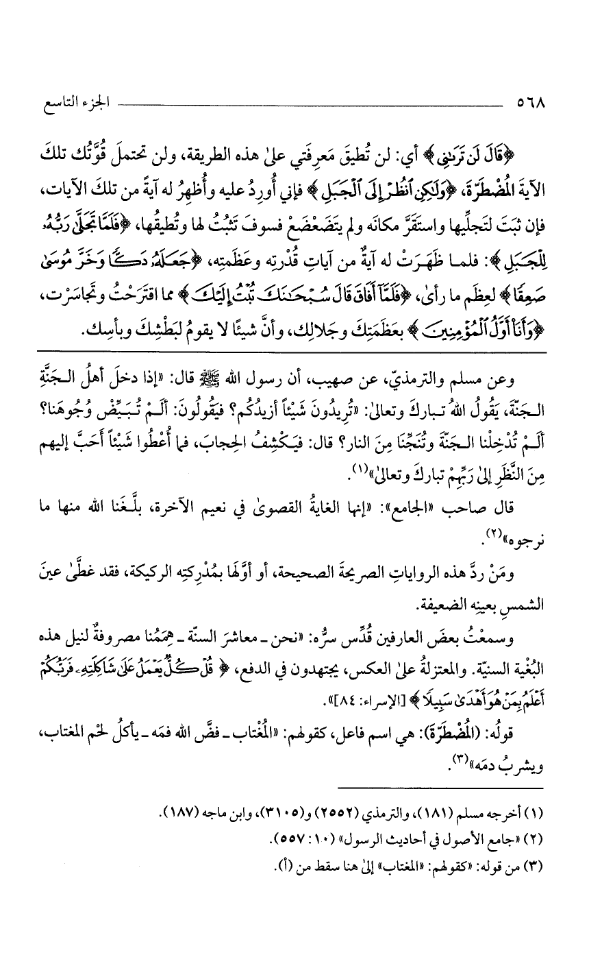 وسمعت بعض العارفين قدس سره: "نحن - معاشر السنة - هممنا مصروفة لنيل هذه البغية السنية. والمعتزلة على العكس، يجتهدون في الدفع، (قُلْ كُلٌّ يَعْمَلُ عَلَى شَاكِلَتِهِ فَرَبُّكُمْ أَعْلَمُ بِمَنْ هُوَ أَهْدَى سَبِيلاً) [الإسراء: 84].