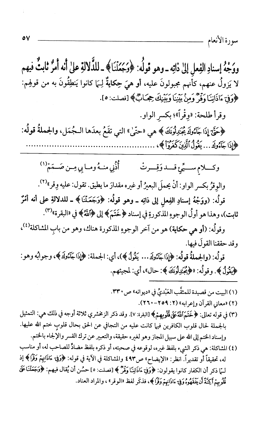 قوله: (ووجه إسناد الفعل إلى ذاته - وهو قوله: {وَجَعَلْنَا {- للدلالة على أنه أمر ثابت)، وهذا هو أول الوجوه المذكورة في إسناد {خَتَمَ {إلى {الله {في "البقرة".